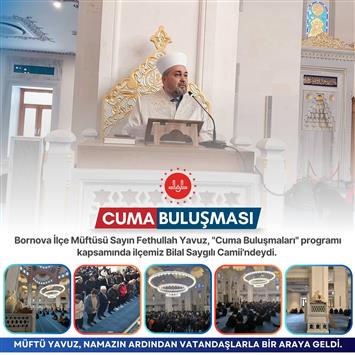 Bornova İlçe Müftüsü Sayın Fethullah Yavuz, İlçe Müftülüğü Tarafından Düzenlenen "Cuma Buluşmaları" Programı Kapsamında Bilal Saygılı Camii'ndeydi