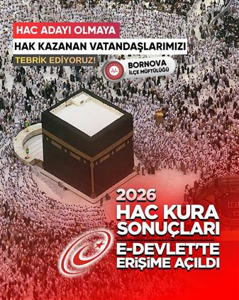 Diyanet İşleri Başkanlığınca gerçekleştirilen 2026 hac kura sonuçları, e-Devlet'te erişime açıldı. Bu yıl kaydını yenileyen ve ön kayıt yaptıran 1 milyon 799 bin 836 kişinin katıldığı hac kurası, noter huzurunda çekildi. Böylece hacı adayı olmaya hak kazanan 84 bin 942 kişi e-Devlet'ten sonuçları görebilecek. Ayrıca sonuçlar hacı adaylarının kayıtlı cep telefonlarına mesaj olarak da iletilecek.