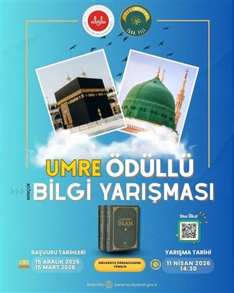 🔸Gençlerin sahih dinî bilgi ve manevi değerlerle donanacağı Umre Ödüllü Gençlik Bilgi Yarışması başvuruları 15 Aralık’ta başlıyor.
