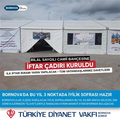 Bornova'lılar, ilçede kurulacak iyilik sofralarında bir araya gelecek, din görevlilerimizin tilavetleriyle Ramazan ayının manevî atmosferinde buluşacak.