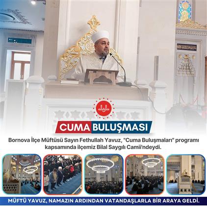 Bornova İlçe Müftüsü Sayın Fethullah Yavuz, İlçe Müftülüğü tarafından düzenlenen "Cuma Buluşmaları" programı kapsamında Bilal Saygılı Camii'ndeydi.