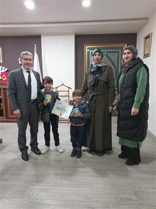 Hacı Bayram 4-6 Yaş Kur’an Kursu öğrencisi Fatih ve aynı kurstan mezun Mehmet Han GÜNDOĞDU kardeşler biriktirdikleri harçlıklarını Gazze’ye bağışladılar. İlçe Müftümüz Harun YILMAZ, bu güzel davranışları sebebiyle kocaman yürekli minikleri tebrik etti.