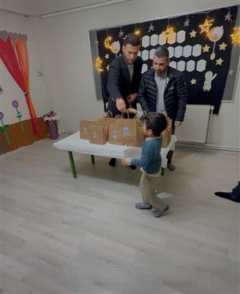 İlçe Müftülüğümüz KYK Manevi Rehberi Yusuf Özlahlan ve beraberindeki üniversite öğrencileri, Üç aylar ve Reğâib Kandili vesilesiyle Muhamnediye 4-6 Yaş Kur'an Kursumuzu ziyaret ederek çocuklara yönelik etkinlik gerçekleştirdi. Etkinliğin sonunda çocuklara hediyeler takdim ettiler.