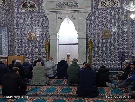 SABAH NAMAZI BULUŞMASI PROGRAMI İlçe Müftümüz tarafından her cuma farklı camilerde düzenlenen sabah namazı buluşması bu hafta İlçe Müftümüz Harun YILMAZ, cami görevlileri ve cemaatin katılımı ile Beyazevler Camiinde gerçekleştirildi.