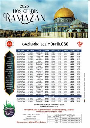 2026 YILI RAMAZAN AYI İMSAKİYESİ