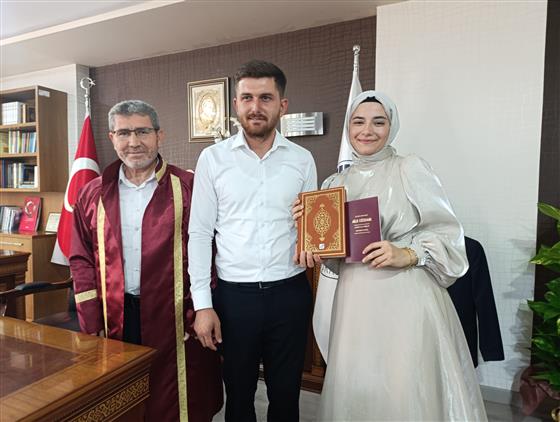 İlçe Müftümüz Harun YILMAZ, Arif Emre KÖSE ve Duygu GÜZEL'in dini ve resmi nikahını kıydı. Çiftimizin nikahına ailesi tarafından nikahına geniş katılım oldu. İlçe Müftümüz çiftimize iki cihan saadeti dileyerek Kur'an-ı Kerim hediye etti.