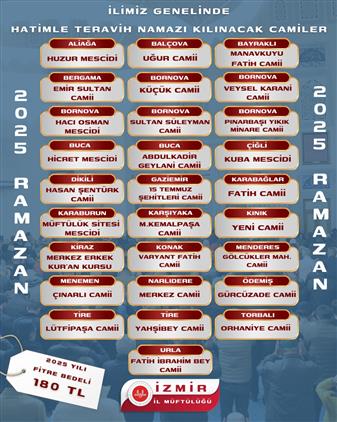 İLİMİZ GENELİ HATİMLE TERAVİH NAMAZI KILINACAK CAMİLER