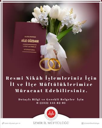 Resmi Nikah İşlemleriniz İçin İl ve İlçe Müftülüklerimize Müracaat Edebilirsiniz