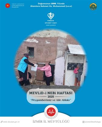 İzmir İl Müftülüğü tarafından, 2025 Yılı Mevlid-i Nebi Haftası münasebetiyle; Karabağlar ve Konak ilçelerinde ikamet eden 35 ihtiyaçlı ailemize, Türkiye Diyanet Vakfı İzmir Şubesi aracılığı ve "Beklenen Sensin, Kardeşlerini Unutma" temasıyla gıda yardım kolisi ulaştırıldı.