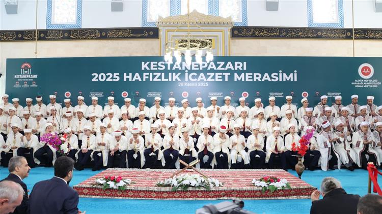 Halkımızın yoğun icabet gösterdiği merasim, icazetini alan 65 hafızın Kur'an Kursu öğreticileriyle birlikte tekbirler eşliğinde camiye giriş yapmalarıyla başladı. Kestanepazarı Öğrenci Yetiştirme Derneği Başkanı Cüneyd Dayhan'ın açış konuşmalarıyla devam eden program, birbirinden değerli okuyucuların Kur'an tilavetleri ile devam etti.