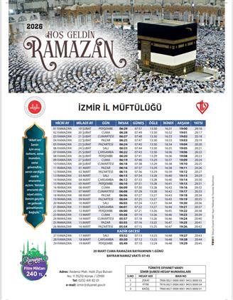 İZMİR 2026 YILI RAMAZAN İMSAKİYESİ