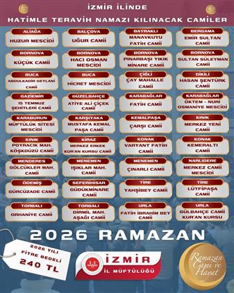 "İZMİR İLİMİZDE 2026 YILI RAMAZAN AYINDA