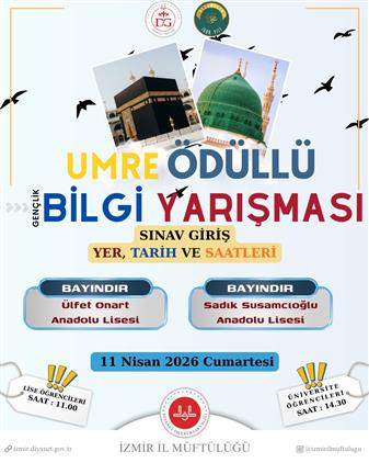 “UMRE ÖDÜLLÜ GENÇLİK BİLGİ YARIŞMASI SINAV GİRİŞ YER TARİH VE SAATLERİ”
