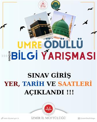 UMRE ÖDÜLLÜ BİLGİ YARIŞMASI SINAV MERKEZLERİ AÇIKLANDI !