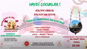 RAMAZAN ALAYI VE TERAVİH BULUŞMASI 04.03.2026 Torbalı İlçe Müftülüğümüz tarafından düzenlenen, çocuklarımızın neşesiyle güzelleşecek Ramazan Alayı ve Teravih Buluşmasına tüm halkımız davetlidir. Detay