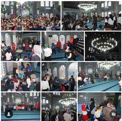 Rahmet, bereket ve mağfiretin kapılarını aralayan mübarek Üç Aylar, camimizi bu kez çocukların neşesiyle, duaların masumiyetiyle doldurdu. “Cami-Çocuk Buluşması” kapsamında gerçekleştirilen programda, minik yürekler Allah’ın evinde bir araya gelerek unutulmaz bir manevi atmosfer yaşadı.Kubbelere yükselen çocuk sesleri, saf saf dizilen minik adımlar ve semaya açılan küçük ellerden dökülen büyük dualar, camiyi adeta bir rahmet bahçesine dönüştürdü. Programda bir ayet, bir hadis eşliğinde kalplere dokunan mesajlar paylaşıldı; Diyanet Gençlik Korosu’nun ilahileriyle gönüller huzur buldu.Çocuklar için hazırlanan oyun ve etkinlikler, pamuk şeker ve patlamış mısır ikramlarıyla yüzlerde tebessüm, kalplerde sevinç oldu. Hem öğrenen hem eğlenen minikler, camiyle güçlü bir bağ kurmanın mutluluğunu yaşadı.Programda İlçe Müftümüz Sn. Mehmet MUSLU çocuklarla yakından ilgilendi. İlçe Müftümüz Sn. MUSLU, böylesi anlamlı bir buluşmanın gerçekleşmesinde emeği geçen Gençlik Merkezi görevlilerimiz başta olmak üzere Kur’an kursu hocalarımıza ve din görevlilerimize teşekkür ederek, çocukların camiyle buluşmasının geleceğe bırakılan en kıymetli emanetlerden biri olduğunu vurguladı.Bu güzel buluşma, bir kez daha gösterdi ki; cami çocukla güzelleşir, dua çocukla umut olur. Rahmet mevsiminde atılan bu minik adımlar, yarınların güçlü ve değerlerine bağlı nesillerinin müjdecisi oldu.