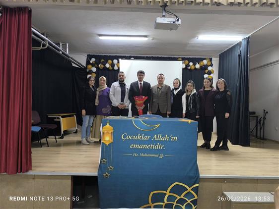 Programda konuşan İlçe Müftümüz MUSLU, Peygamber Efendimizin (s.a.s.) çocuklara yaklaşımındaki sevgi, merhamet ve anlayış temelli eğitim metoduna dikkat çekti. Çocukların kişilik gelişiminde güzel örnek olmanın önemini vurgulayan MUSLU, sabır, şefkat ve doğru iletişimin aile hayatındaki belirleyici rolüne değindi.
